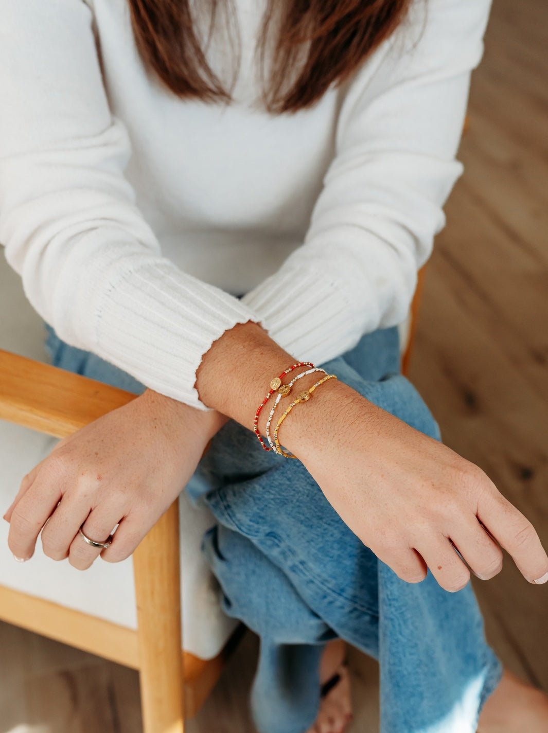 - Gold bracelets: 14k gold plated beads