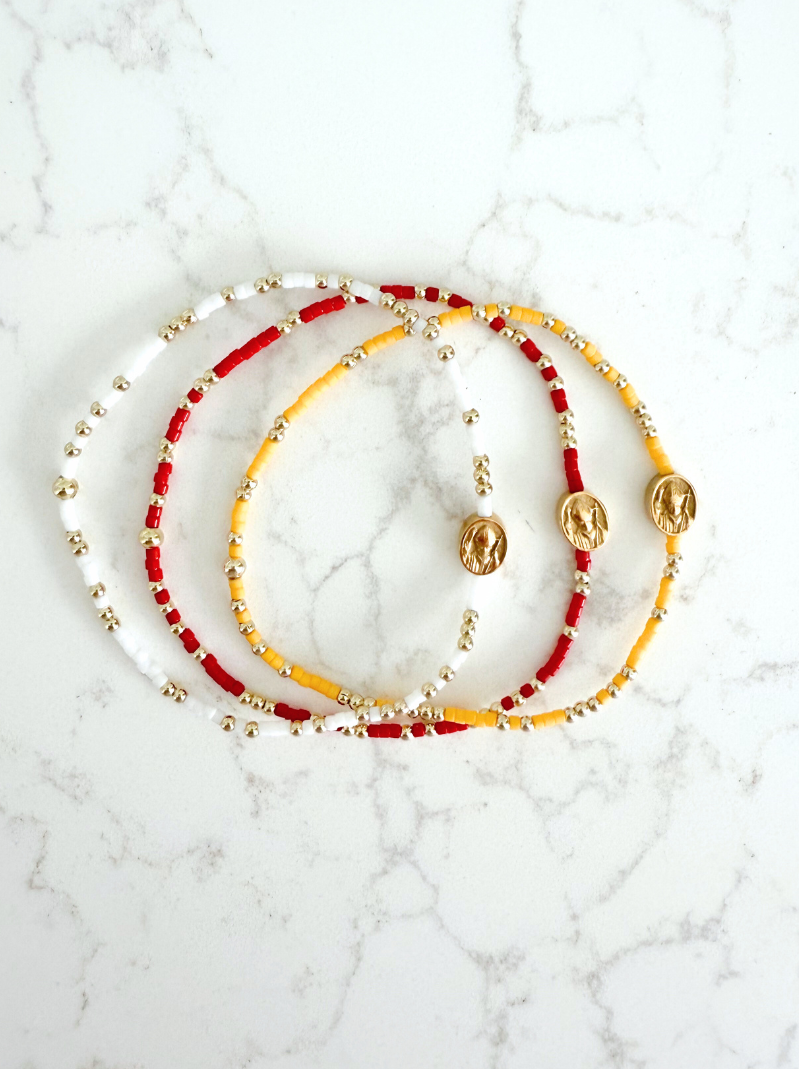 - Gold bracelets: 14k gold plated beads